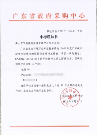 1.中标广东碳市场和全国碳市场控排企业碳排放核查项目