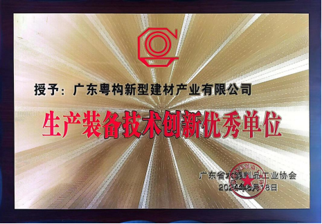 近日,广东粤构新型建材产业有限公司凭借在生产装备技术工作方面的优异表现,荣获广东省水泥制品工业协会颁发的“生产装备技术创新优秀单位”。