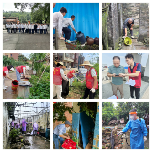 李锋带头深度洗刷路面污渍并仔细清扫地面积水,处置废弃盆栽绿化垃圾,黄坚达全面排查废弃容器积水隐患,陈东文对排水口淤积、堵塞处进行疏通,从源头上解决积水的问题。在李锋的带领下,志愿者们齐心协力对卫生死角开展联合整治,现场一派热火朝天的忙碌景象。