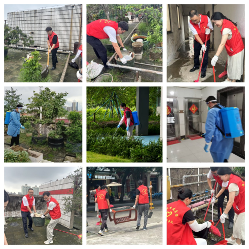 活动期间,集团以“三清三整”(清垃圾、清死角、清异味,整秩序、整设施、整容貌)为重点,志愿者们对集团管辖物业建展大厦天台进行重点清理。雨后,该区域出现了花盆乱堆乱放、卫生死角未清理、地面积水留存等问题,需及时清理整治,以消除蚊虫孳生的环境。